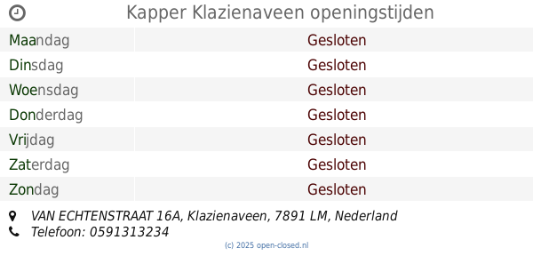 Het is ook mogelijk: Bewerk deze OPENINGSTIJDEN van Winkel Kapper In Klazienaveen, VAN ECHTENSTRAAT 16A,